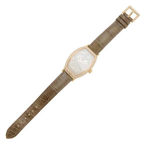 画像はイエローゴールドに見えますが、実際には18Kローズゴールドが採用されており、大人の色気漂うおしゃれなジュエリーウォッチに仕上がっています。