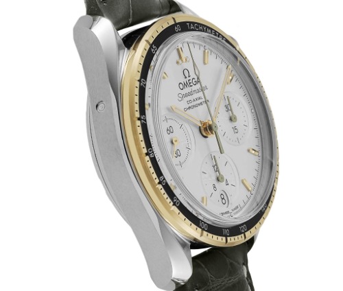 エレガントでワンランク上の高級感があるオメガのスピードマスターです。ベゼルとベレウトの色が深みのあるグリーンカラーで、大人な雰囲気があるオシャレなモデルの時計です。