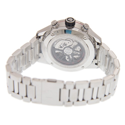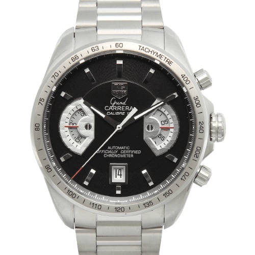 ブラックの文字盤とブラックのアリゲーターレザーストラップを使用し、ステンレススチールのシルバーカラーとの組み合わせがシックなカレラです。