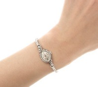 評価:美しいです。ダイヤモンドも入っているし、女性らしいアンティーク時計で気に入っています。時計なんだけれど、私は、アクセサリー感覚で身に着けています。お気に入りのアンティークウォッチなので、大切に使います。
