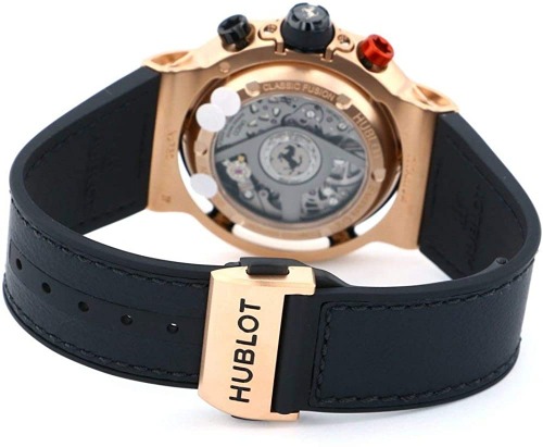 ウブロ(HUBLOT)の「526.OX.0124.VR」はフェラーリGTとコラボしているモデルですが、18Kのキングゴールドが素材に採用されています。