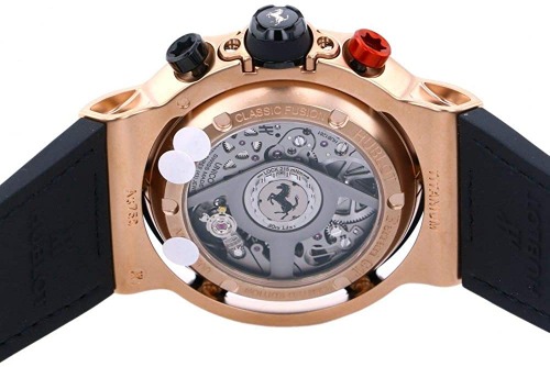 ウブロ(HUBLOT)フェラーリGTコラボモデルは細かいところにもこだわりが詰まっており、裏蓋部分にフェラーリのロゴデザインが施されています。