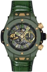 ビッグバンウニコWBC「411.GX.1189.LR.WBC19」はグリーンカラーが個性的で世界で100本しか生産されていない希少価値が高い腕時計です。