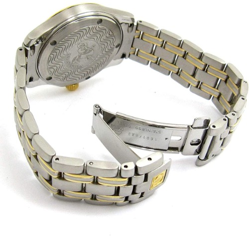 文字盤にイルカの模様がないのが特徴的な2001年に発売された、オメガシーマスター120mのジャック・マイヨール氏とのコラボモデルです。