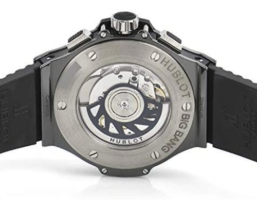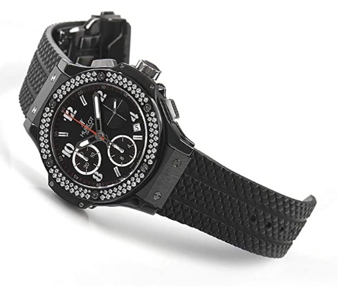 ブラックカラーをベースにしたケースには押し目もなくダイヤモンドが装飾されており、シックな雰囲気に華やかさを添えています。4時の位置にはデイト表示、スモールセコンドも搭載されていて実用的でもあるウブロ(HUBLOT)のメンズ時計です。