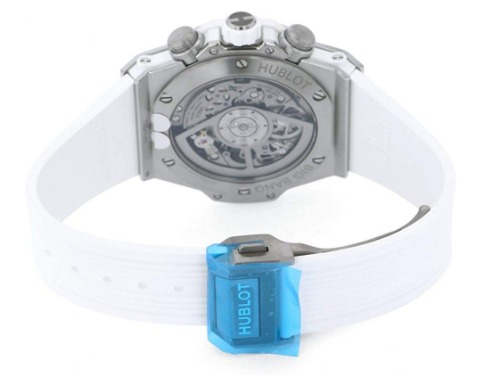 文字盤と裏蓋がスケルトンになっており、GBの自社製ムーブメントが見えます。デザイン性と機能性ともに優れているウブロ(HUBLOT)のビッグバンウニコです。ホワイトカラーの爽やかな印象があり、夏場でもカッコよく身につけることができます。
