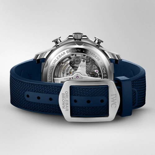 シースルーバックデザインなので、身に着けていない時でも裏蓋部分からIWC自社製ムーブメントならではの時計の動きも堪能することができます。