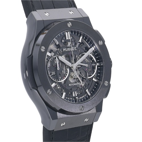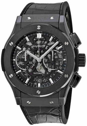 ウブロ(HUBLOT)のブラックマジック「525.CM.0170.LR」は機械式好きから絶賛されている腕時計で、両面スケルトンモデルです。