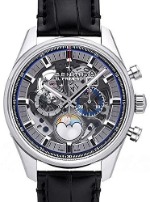 クロノマスターは全面スケルトンデザインやオープンハートデザインなどが施され、ゼニスの高い技術を堪能できるシリーズになります。