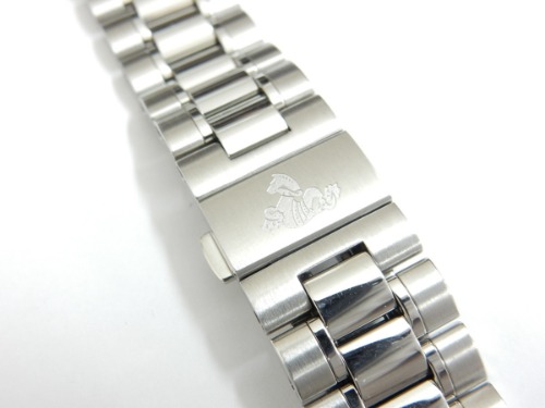 18mmのオメガ純正ステンレスベルトは、両側プッシュ式の片開きタイプになっています。