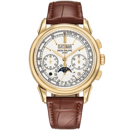 グランド・コンプリケーション5270Jは、イエローゴールドのケースに3つのインダイヤルを備えた、クロノグラフです。