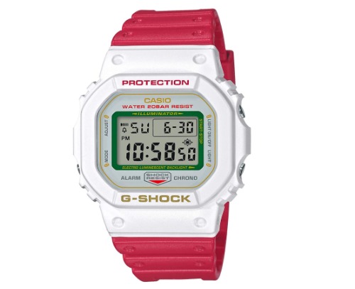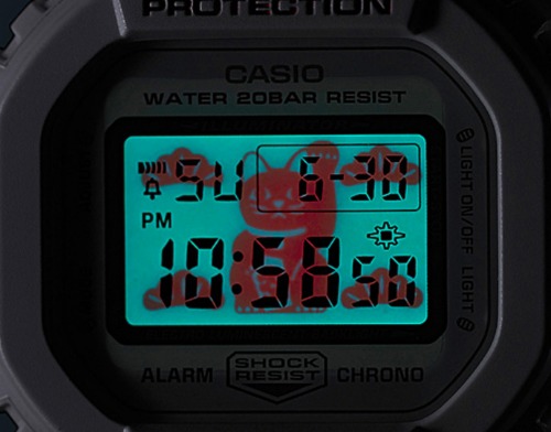 Gショックから2020年に新発売された、招き猫シリーズのホワイト・レッドカラーモデルです。液晶画面の側面に黄色の小判が印字されており、ELバックライトを押すと、暗闇で招き猫のイラストが浮かび上がります。猫好きだけでなく、験(げん)を担ぐ職業の方から人気がありそうなモデルです。