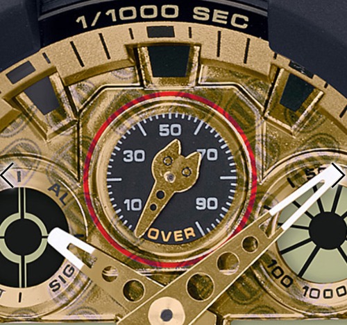 Gショックのゴールドモデルは、文字盤に細かく小判柄が刻印されています。