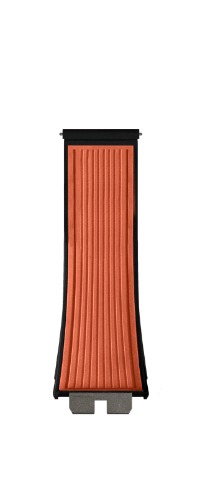 オレンジがフレッシュなラバーベルトです。ストライプが入っていて、アクセントになっています。裏側はブラックラバーで、表からも少し見えるラインが明るいカラーを引き締めます。ご紹介したのはオレンジですが、他にもブルーやレッド、ブラック、ホワイトなどカラーバリエーションも豊富です。ベルトの色が変わるだけで、時計はがらりと表情を変えます。