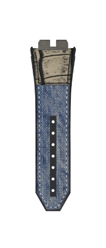 高級腕時計メゾンの純正ストラップとは思えない、実に自由な発想で作られたジーンズとアリゲーター革のベルトです。ジーンズベルトには、ジーンズだけのモデルと、ダメージジーンズのモデルがあり、お好みでセレクトできます。ただ非常に人気が高いため、オンラインショップでは現在品切れとなっています。ウブロのビッグ・バンシリーズ、そしてモータースポーツに合わせてほしいベルトです。