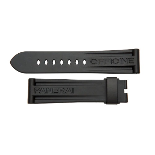 パネライの純正ベルト、ブラックカラーです。本体を購入した際にブラックのカウッチューベルトがついてくるモデルも多く、最もポピュラーでスタンダードなカラーといえます。汚れに強く、多少傷ついても目立たないため毎日仕事で使う方などにおすすめです。また夏場のベルトとして1本買っておくと、レザーやメタルストラップの傷みを軽減できます。