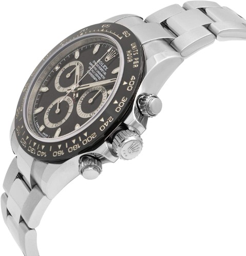 コスモグラフ デイトナは優れた堅牢性と防水性を備え、タキメーターべゼルでは平均速度の計測が可能となっています。