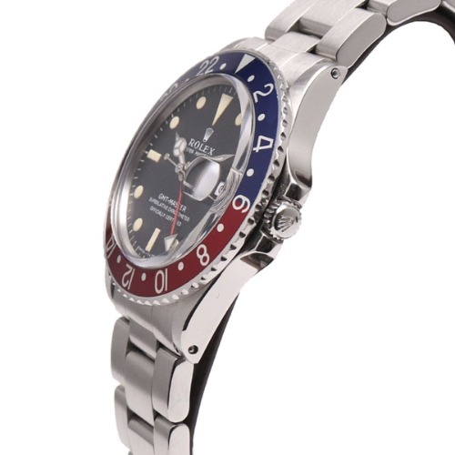 GMTマスターⅠ1675は、ペプシカラーのベゼルを持った、現在私たちが市場で見ることのできるGMTマスターⅠのなかの元祖とも言えるスタイルの腕時計です。すでに生産は終了していますが、中古品も非常に人気が高く、多くの中古腕時計ショップで取り引きされています。中でも8番台と言われる1960年代に製造されたものは、アンティークとして800万円以上の価値がつきます。