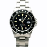 GMTマスターⅠ 16750は、GMTマスターの3世代目になります。1981年に発売されましたが、すでに防水性能が100mまでアップしています。またこの時期までは風防がプラスチックで、プラスチックならではの変色なども魅力のひとつです。16750の初期には、まだインデックスの蓄光部分にふちどりが無く、ふちどり無しモデルは高い希少価値がつきます。