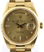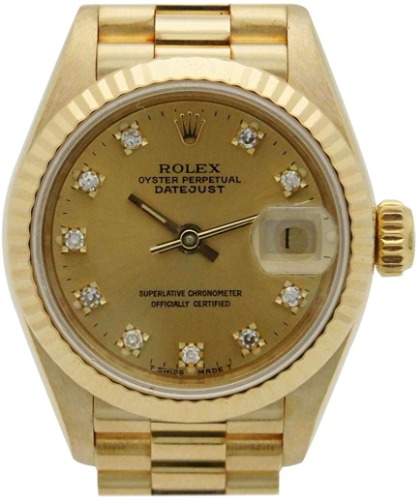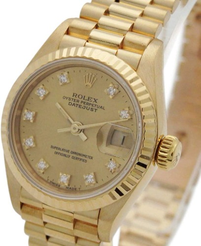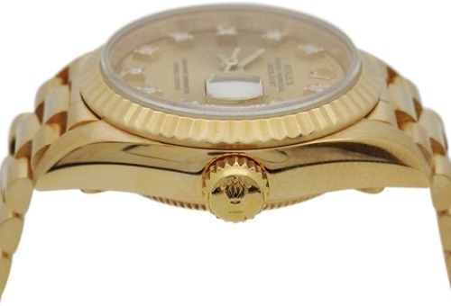 シャンパンゴールドカラーのダイヤルに華やかで美しいダイヤモンドインデックスが装飾され、ダイヤルを見るだけでも見惚れてしまう美しさです。