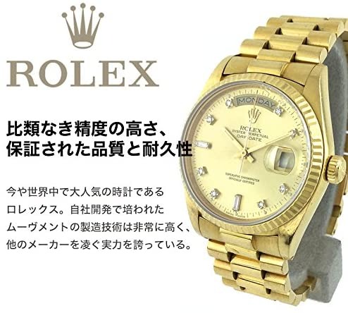 評価:見た目も豪華で気に入っていますが、なんといっても使いやすいです。さすがロレックスと感じるような腕時計で、特にお気に入りがフルスペルの曜日表示です。華やかで使いやすい腕時計を探していた私にぴったりの腕時計になります。