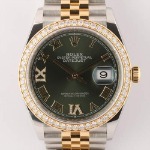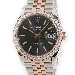 デイトジャスト36 126281RBRはベゼル部分に豪華なダイヤモンドが敷き詰められてドレスウォッチとして愛用する人も多いです。