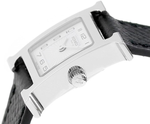 評価:実用面では、どの角度から見ても反射せずクリアに見えるところ、薄くて軽いところ、文字盤が円でないかわりによく見るとお洒落な放射状の分割線が入っていて正確な分がわかるところが好きです。手首が細くてたいていの時計がゴツすぎるのですが、この時計はバランス良く見えます。