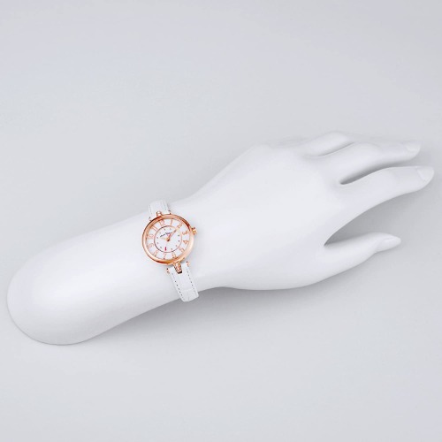 TH27P-WHはホワイトとピンクゴールドカラーがピュア&清楚なイメージを作ることができると人気があるレディース腕時計です。