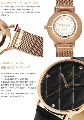 MEIKAの腕時計はメンズ・レディース問わず愛用しやすいおしゃれな腕時計ですが、特に見た目の美しさから女性から高い人気を誇ります。