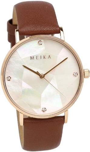 MEIKA002-WHRG-BRも多面カットが施された本物の天然マザーオブパールが採用されている腕時計です。