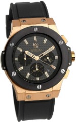 ゴールドケースが豪華な印象を作るとともに、ブラックベゼル・ダイヤルが引き締まった男らしいかっこよさを作ります。
