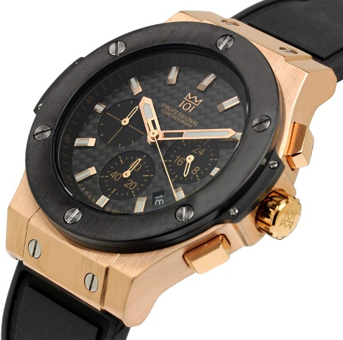 評価:元になったデザインが良いからと言うのはありますが、非常に綺麗であり、色もゴージャス、そして安いです。文字盤は薄いカーボンでできており、おしゃれです。クロノグラフ動きます。僕のは針のズレはほぼないです。