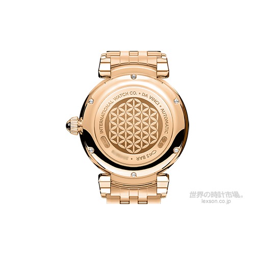 オフホワイトのダイヤルにゴールドカラーのアラビア数字インデックスが上質さを醸し出し、ケースバックにはフラワー・オブ・ライフのエングレーヴィングが施されています。