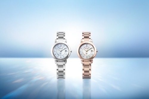 ダイヤルは透明感漂うピンクのグラデーションになっており、中央周辺には水滴の模様がアレンジされています。