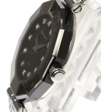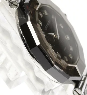 評価:文字盤にあるダイヤモンドも美しいけれど、32面にハンドカッティングされたケースも綺麗です。いろんな方向からの光が反射して、ダイヤモンドみたいに輝いています。とても、綺麗で見惚れます。