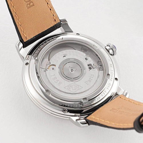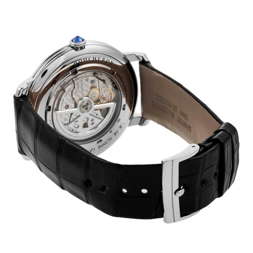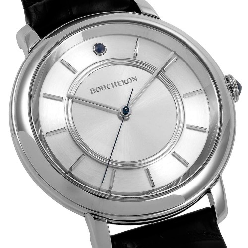 本来宝石装飾を得意とするブシュロンがあえて装飾を廃してシンプルなデザインに取り組んだ、メンズウォッチの王道ともいえるホワイトゴールドケースのモデルです。