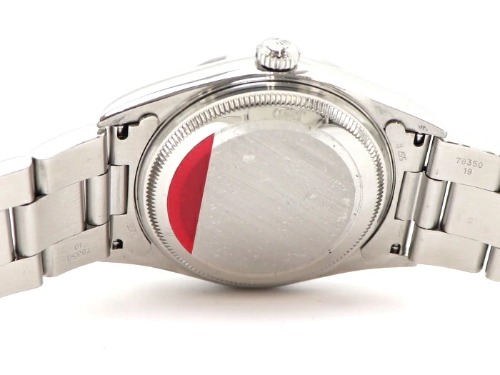 ロレックスの独自素材「ホワイトロレゾール」が採用され、美しい輝きは今もなお健在しています。