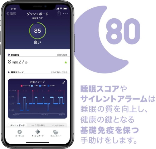 心拍やGPSだけでなく、睡眠スコアなども計測して睡眠の質を高めることもできる点が好評です。