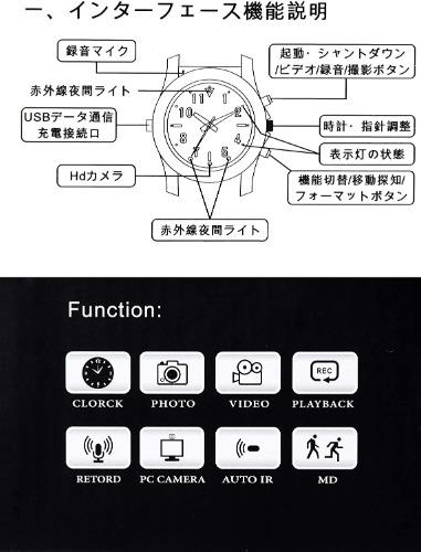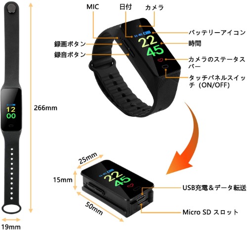 評価:見た目普通の腕時計で至近距離で疑ってみて、ようやくレンズが確認出来るレベルです。音声もそれなりに取れて、暗視機能も割とちゃんと映ってると感じました。ただ難点があり、レンズの画角が狭いのでしょう。それなりに距離がないと時計(カメラ)の角度によっては明後日の方向しか映ってないと言う事があります。