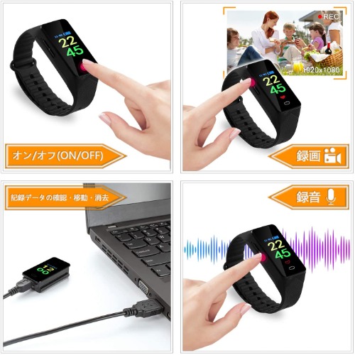 特徴 | ・暗視補正+高画質の1080Pレンズ ・日常生活用防水 | ・リモートカメラ機能 ・スマートフォン探知 | ・6時の位置にカメラ ・赤外線夜間ライト | ・スマートウォッチ型 ・素早く撮影可能 |