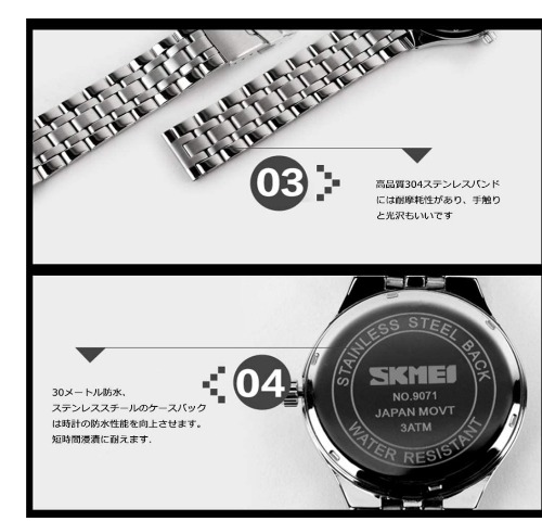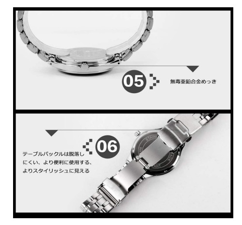 評価:安くて日付無しだから時間を合わせればその後は竜頭を回さなくていいから気軽。私が買った時は1つ2000円程度なのにデザインが良い!この商品は2つセットなので4000円ちょっとで購入。私的にはお値段以上に楽しめていると思います!