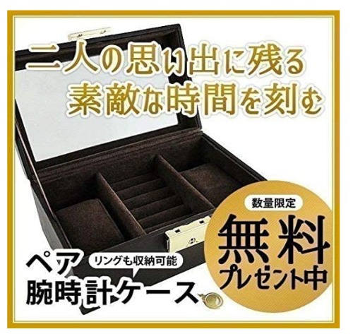 評価:写真のまんまでした!箱に2つ時計が並んで入っていて、見た目もばっちりです。いい買い物ができました。