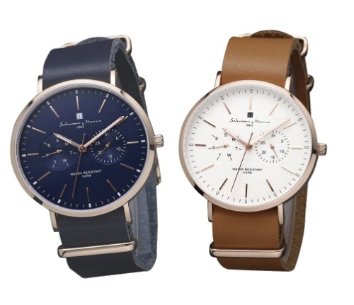 レディースモデルはシンプルに3針デザイン、メンズは6時の位置にスモールセコンドが搭載されていて実用的な腕時計です。