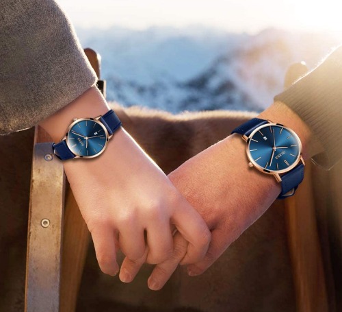 夫婦やカップルへのプレゼントにも最適なオシャレなペアウォッチです。着用するごとに肌になじむレザーベルトに、上品な光沢感があるブルーカラーの文字盤で幅広いシーンに合わせられる腕時計です。
