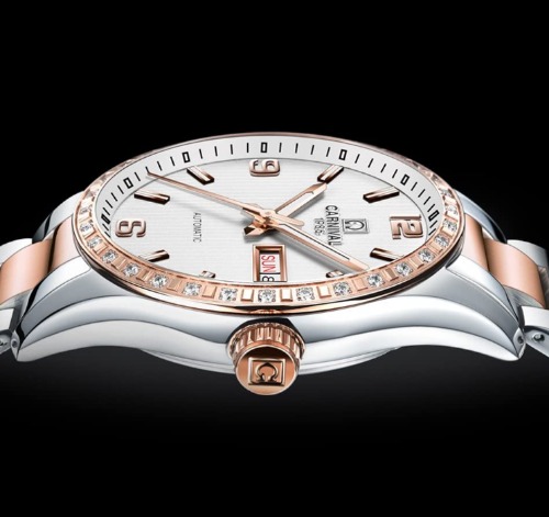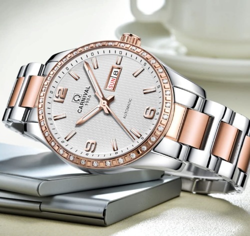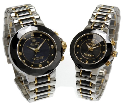 文字盤にラインストーンが装飾されていて高級感がある腕時計です。メンズとレディースを合わせるとラインストーンの部分がハート型になるので、夫婦や恋人へのプレゼントとしてもぴったりの腕時計です。