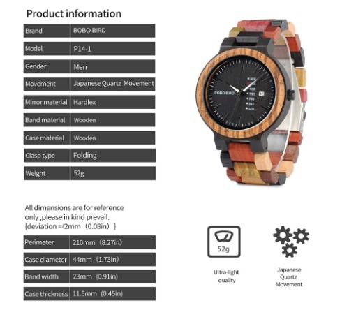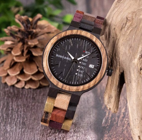 評価:ベルトひとつひとつの木目が鮮やかで、とにかく可愛いです!そして何より軽い!つけてても全然重みを感じません!良き!曜日、日付表示機能も、案外重宝してます。1つ気になる点といえば全面木製なので防水性はないでしょうね。暑いシーズンだと汗とかも吸っちゃいそうです…
