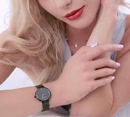 評価:彼と一緒に購入しました。2つともとてもおしゃれでシンプルな腕時計です。日付やバンドの調整も簡単にできました。キラキラ度合いがとてもきれいです。軽く着け心地もよく何に合わせても可愛いです。文字盤が見やすくベルトも柔らかいので,気にいってます。アクセサリー感覚でも最高です。