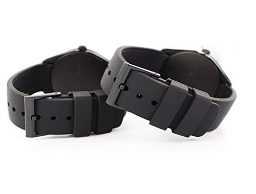 メンズモデルがブラックでレディースモデルがホワイトとなっており、男女でデザインの差別化があるオシャレでシンプルなペアウォッチです。シリコン素材のベルトが使用されており、暑い夏場やスポーツ時にも蒸れにくいため実用的な腕時計です。