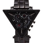 三角の文字盤は、スタイリッシュに配置されたインデックスやデイト表示がお洒落感を醸し出します。