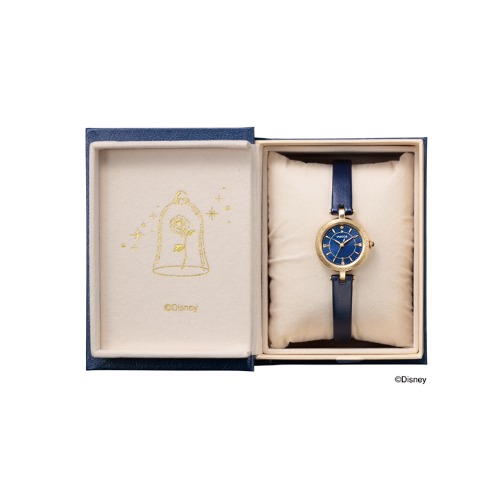 ネイビーとゴールドの色合いは、舞踏会で野獣が着ていた正装を表現し、ベゼルは、お城のアンティークな装飾をイメージしました。